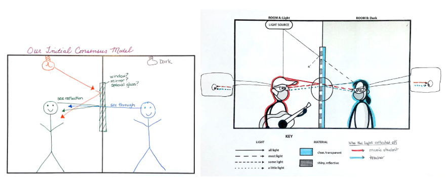 Small Group Models: Students collaboratively create models and revise them as they gather new evidence or refine their understanding throughout a unit. Seeing the changes students make reveals how their ideas are developing.