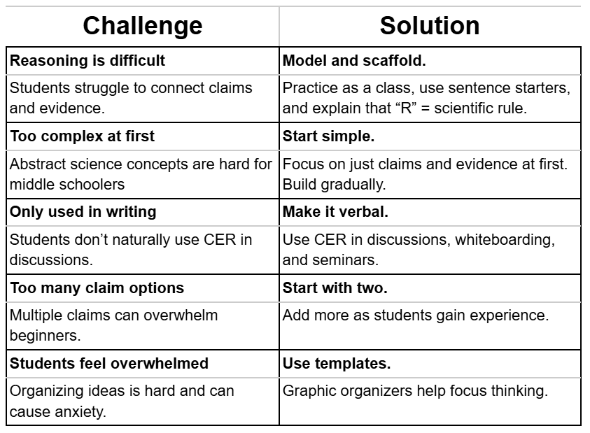 By explicitly teaching CER, you're simplifying the complex task of argumentation for students who are still developing higher-order thinking skills.